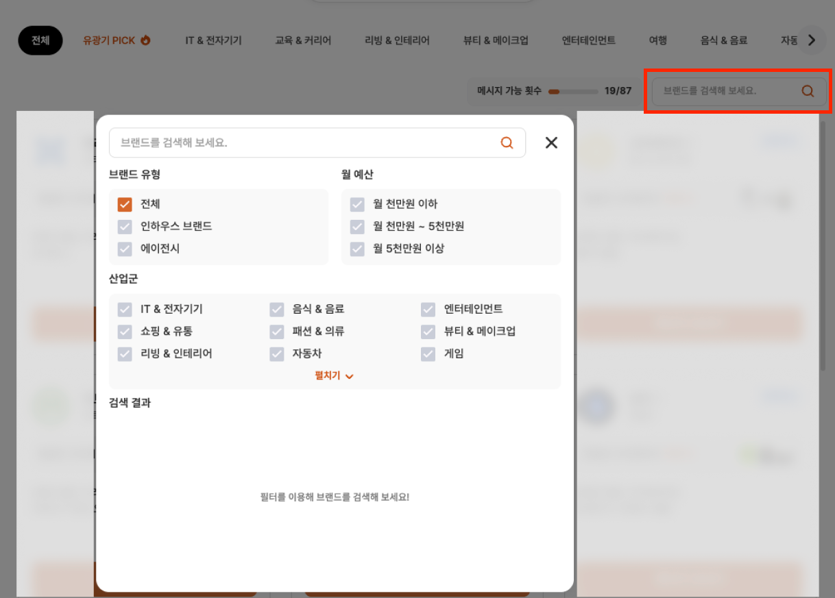 특히 가장 큰 변화는 ‘탐색하기 탭’의 추가입니다. 스튜디오 뷰에서 브랜드들이 올린 캠페인을 한눈에 볼 수 있고, 필터를 이용해 분야·예산·유형 등 원하는 조건으로 정확하게 탐색할 수 있게 되었어요.