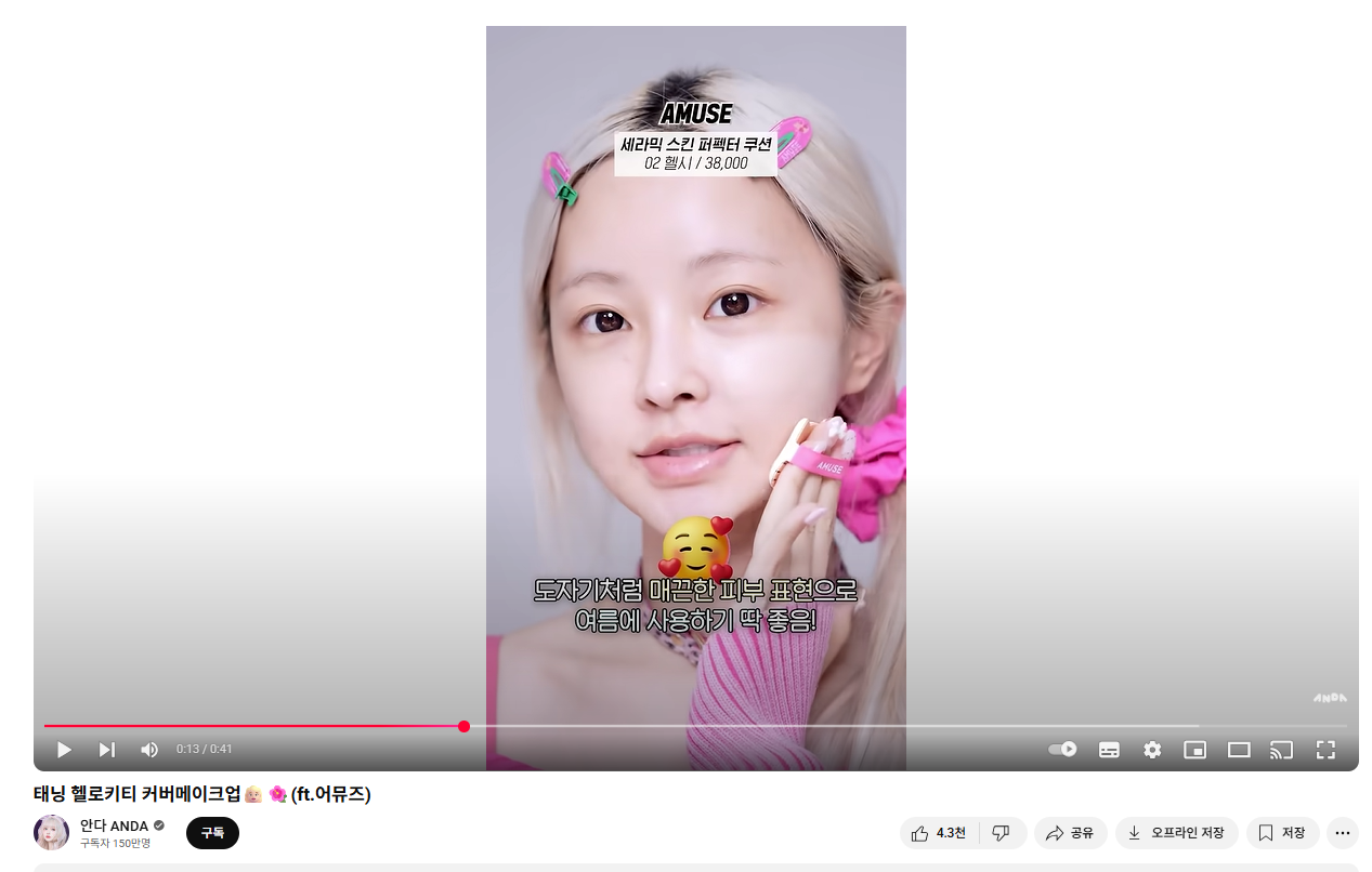 이 중 1위를 차지한 크리에이터 ‘안다 ANDA’는 13개 영상으로 다양한 브랜드와 협업을 진행했는데요. 예를 들어 ‘투에이엔’의 하이라이터 제품이 포함된 영상은 113,961회, ‘어뮤즈’와 함께한 영상은 92,955회의 조회수를 기록하며 많은 구독자 기반과 함께 올리브영 랭킹을 크게 끌어올렸습니다