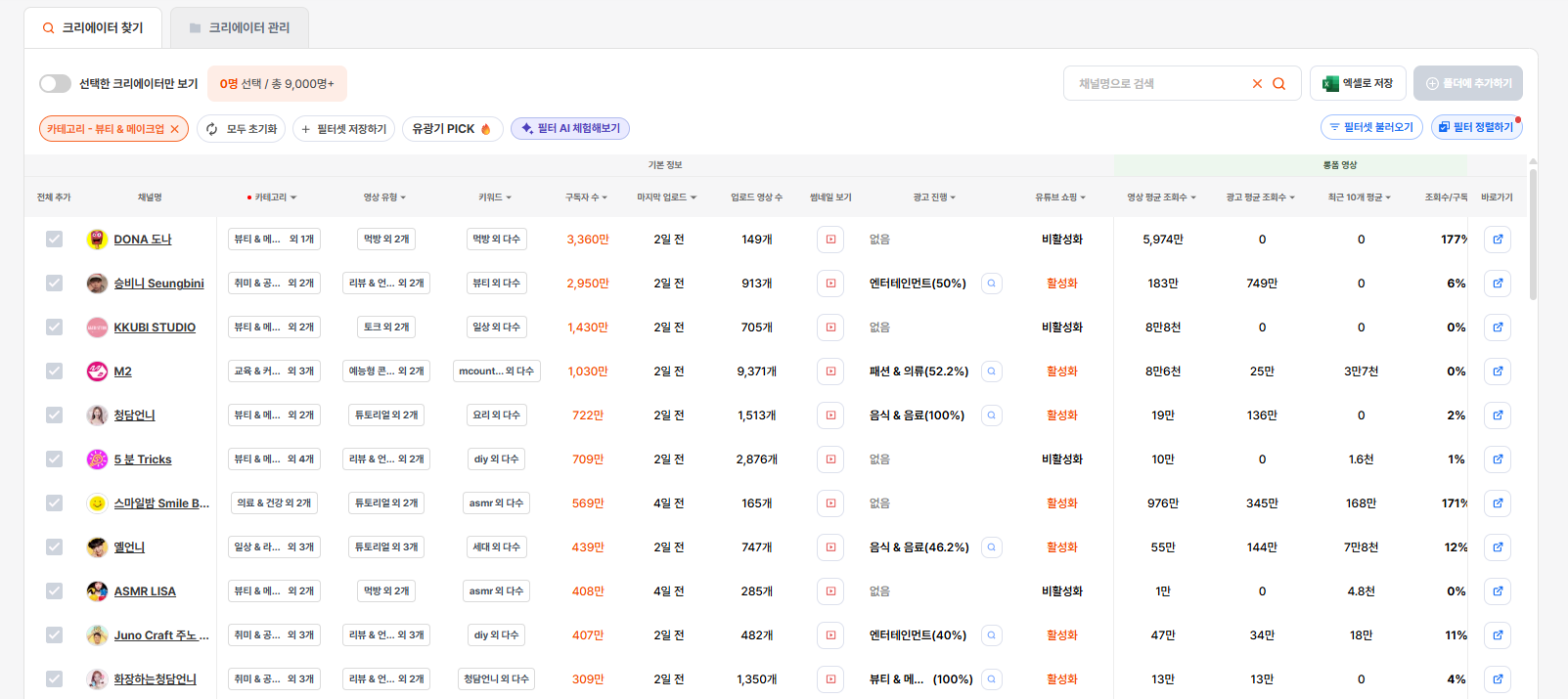 뷰티 크리에이터 선정에 고민이 된다면 이제는 유광기 데이터를 활용해 전략적인 선택을 해보세요!