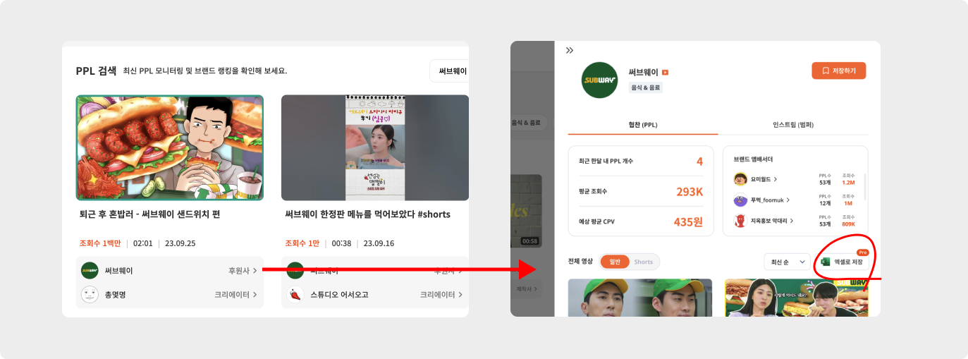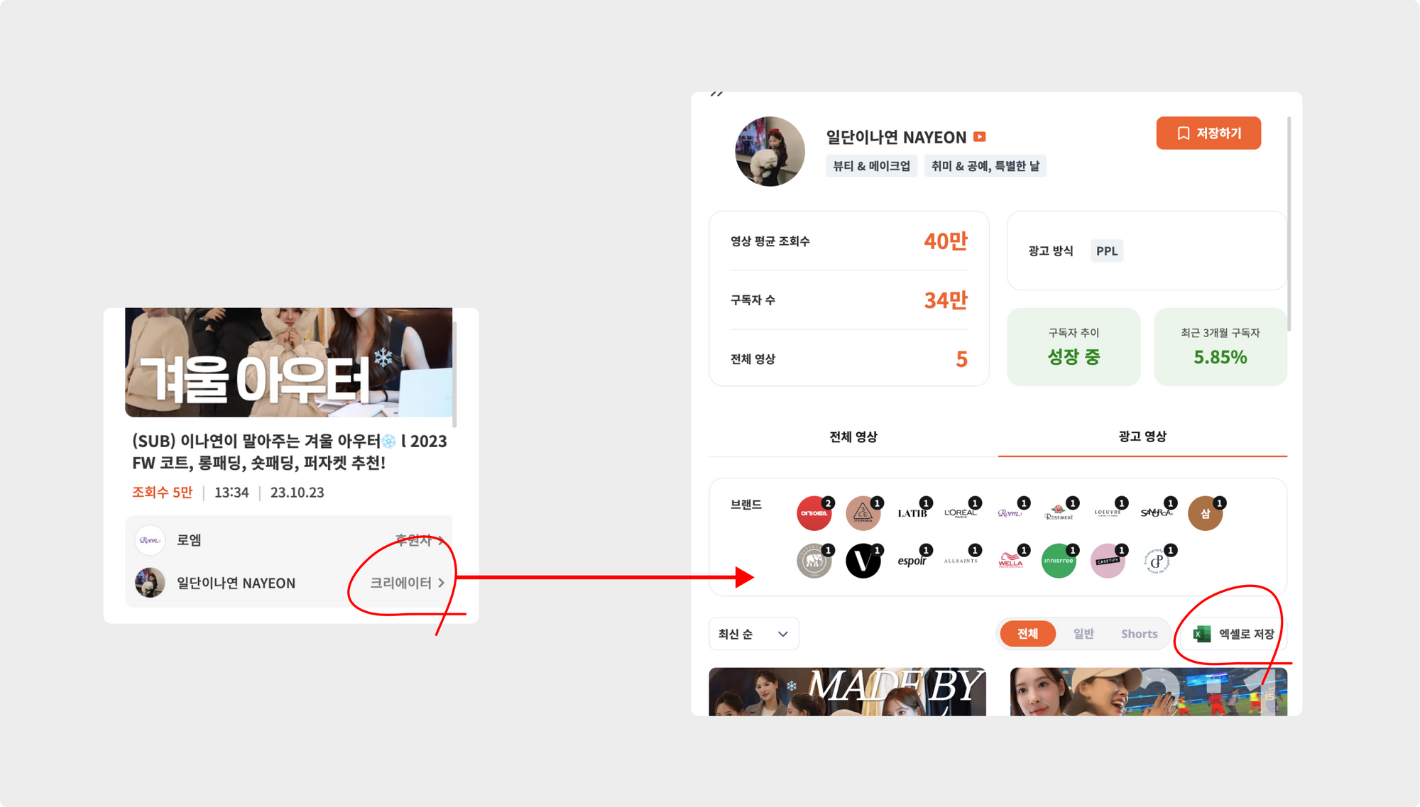 경쟁사, 유튜버 광고 레퍼런스 엑셀로 다운받기 - 유광기 Pro