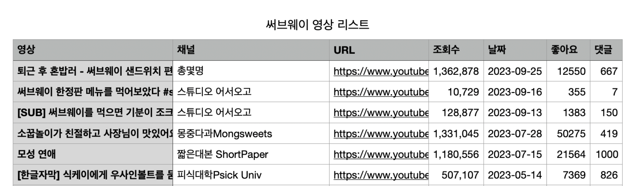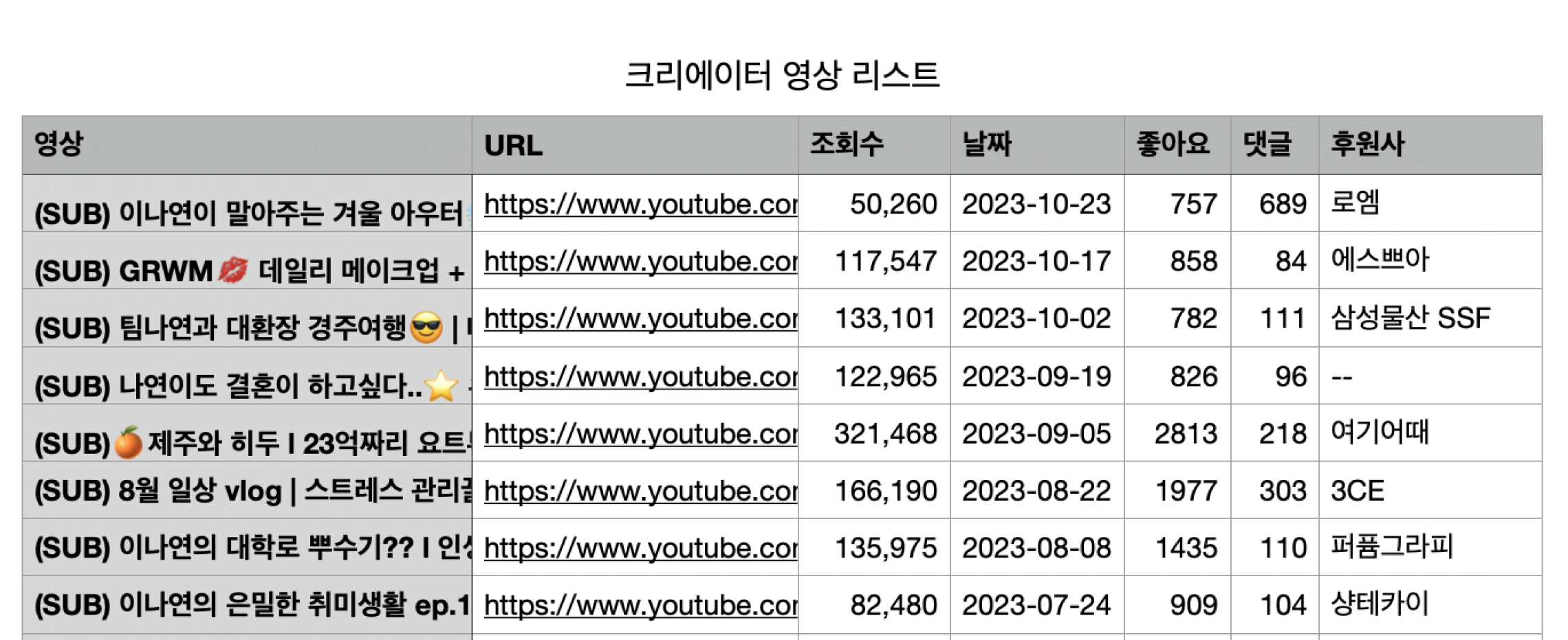 경쟁사 광고 동향 분석하기 (PPL / 트루뷰 인스트림 리스트업)
