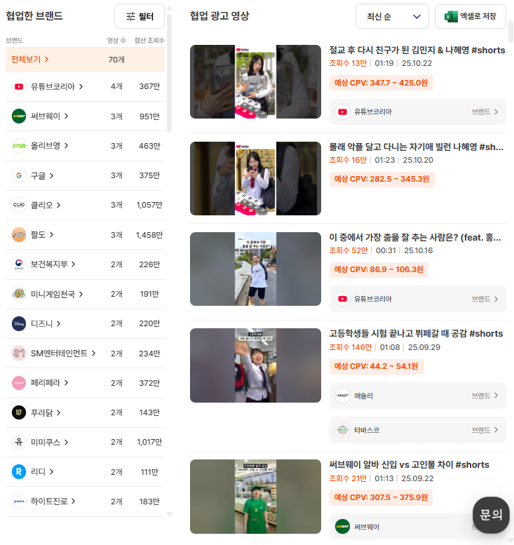 ‘써브웨이 알바 신입 vs 고인물 차이’ 영상은 조회수 210만 회, CPV 300원대 이하를 기록하며 숏폼 기반 협찬의 효율성을 입증했죠.