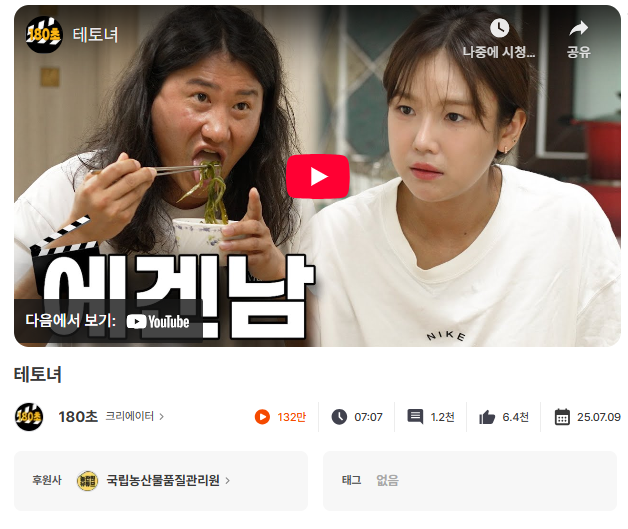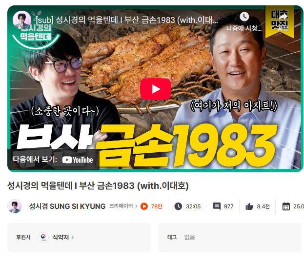 ‘식중독 예방 캠페인’과 먹방 콘텐츠가 주를 이루는 ‘성시경’ 채널은 참 잘 어울리는 조합이죠!