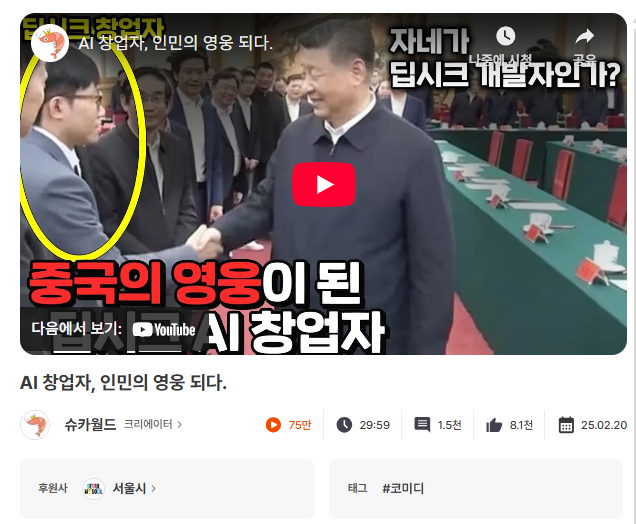 당시 ‘딥시크’가 화제였을 때, 경제·사회 관련 트렌드에 민감한 시청자가 많은 ‘슈카월드’ 채널에 서울시의 AI 인재 육성 정책 PPL을 집행했습니다.