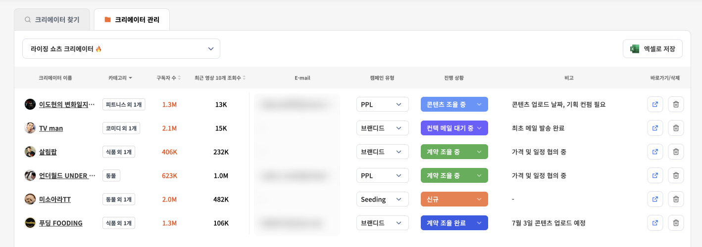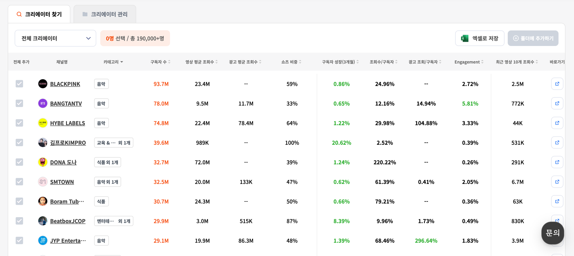 ex) 국내에서 가장 빠르게 성장하는 쇼츠 크리에이터 리스트업 하기