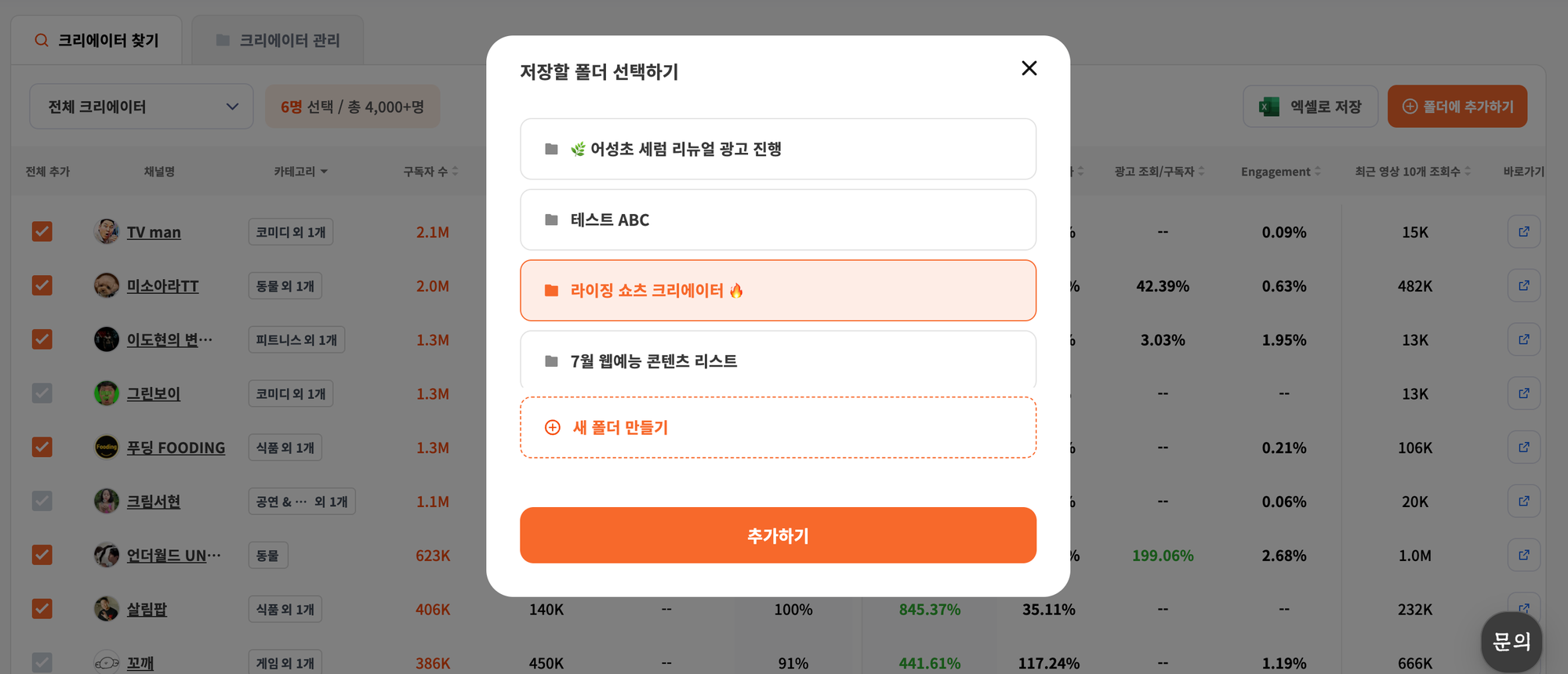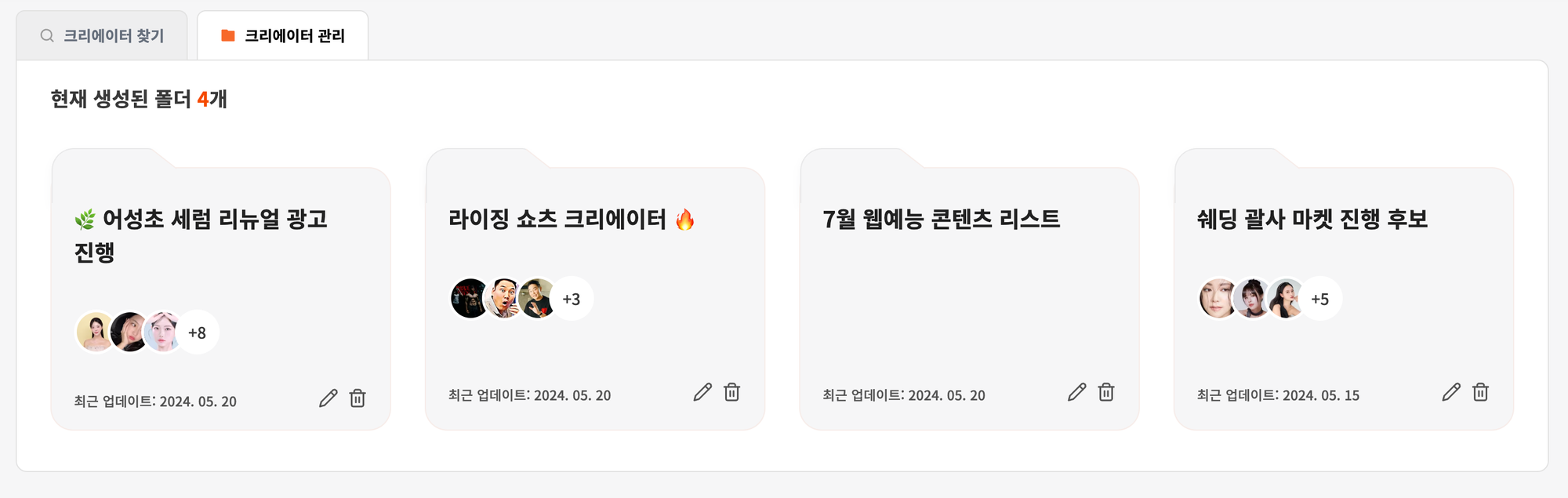 4. 크리에이터 폴더 리스트가 준비됩니다 (팀원들과 자동으로 공유).